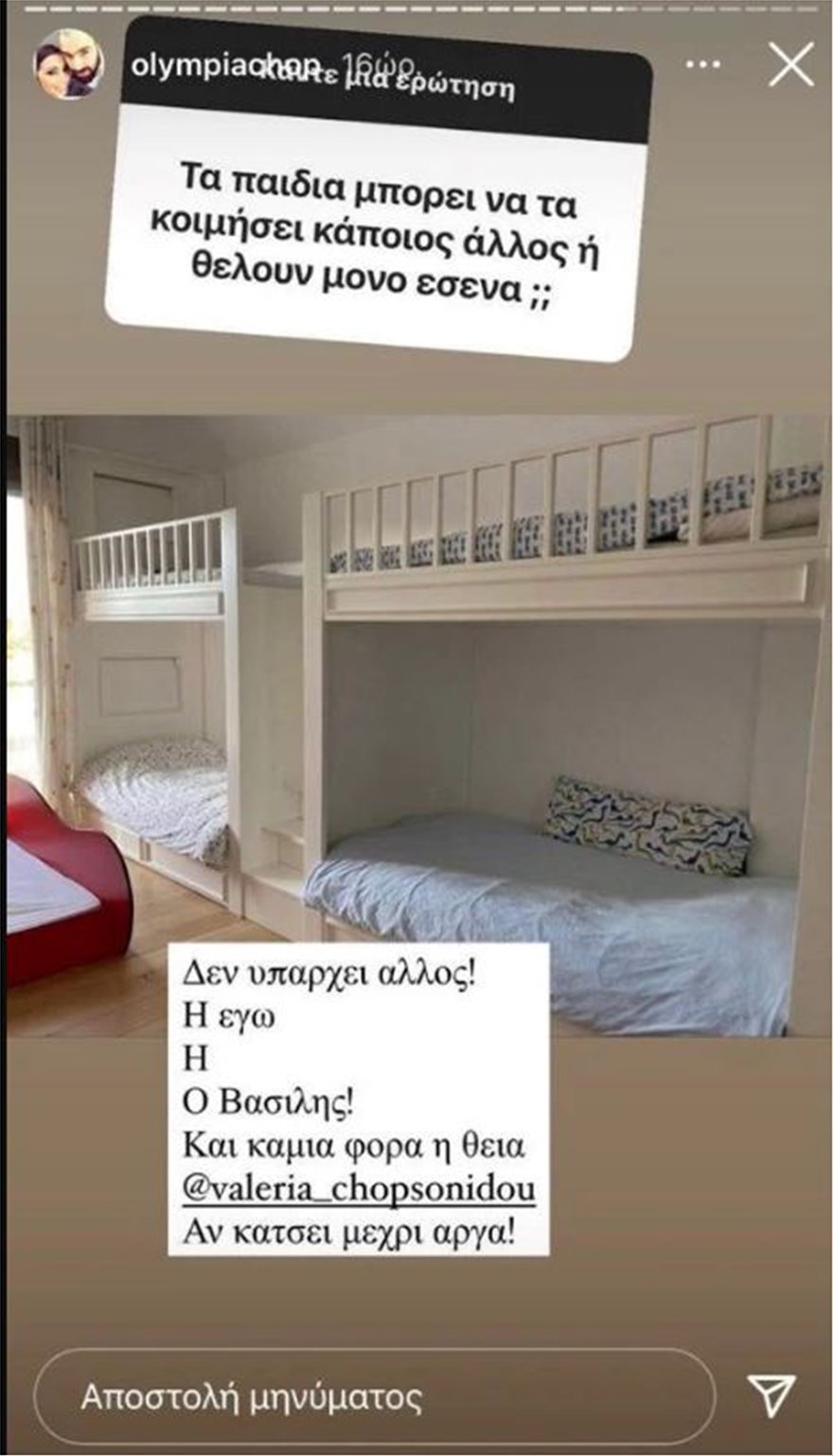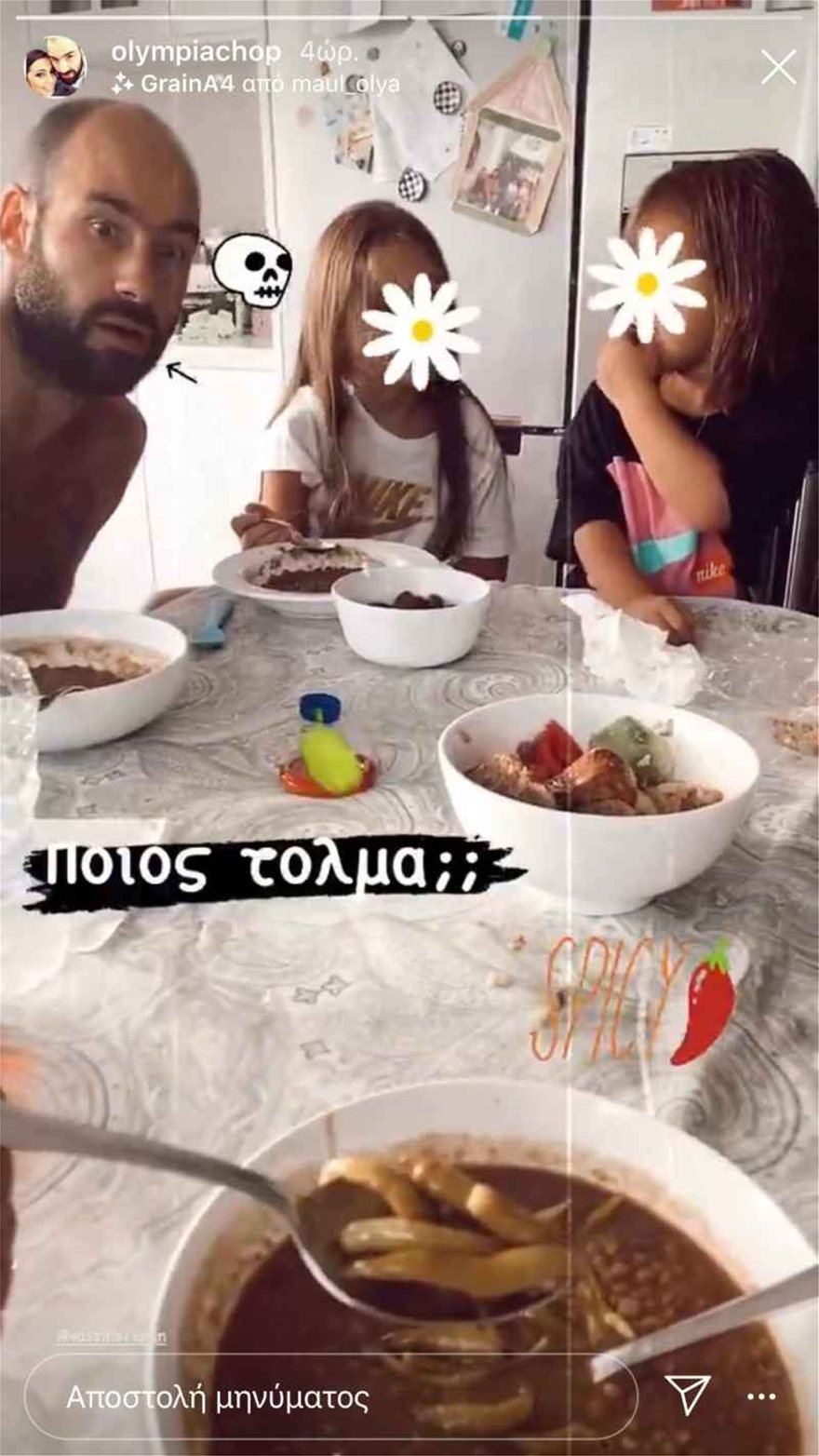 Ο «kill Βill» και η Σταρς Ελλάς 2006 περνάνε μοναδικές στιγμές με τα παιδιά τους στο σπίτι του στα νότια προάστια και μέσω των προσωπικών τους λογαριασμών στο instagram, κυρίως της Ολυμπίας, η οποία είναι ιδιαίτερα ενεργή, μας έχουν ξεναγήσει αρκετές φορές στην καθημερινότητά τους.