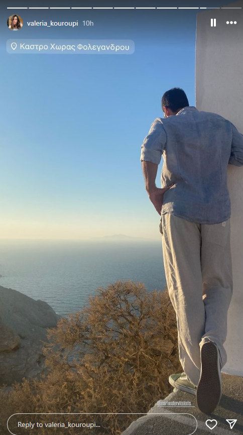 Επιπλέον, αναρτά φωτογραφίες από τη θάλασσα, από τα πιάτα που απήλαυσαν σε ταβέρνα του νησιού και από το ηλιοβασίλεμα, ενώ φωτογράφησε τον αγαπημένο της, Μάριο Δερβιτσιώτη.
