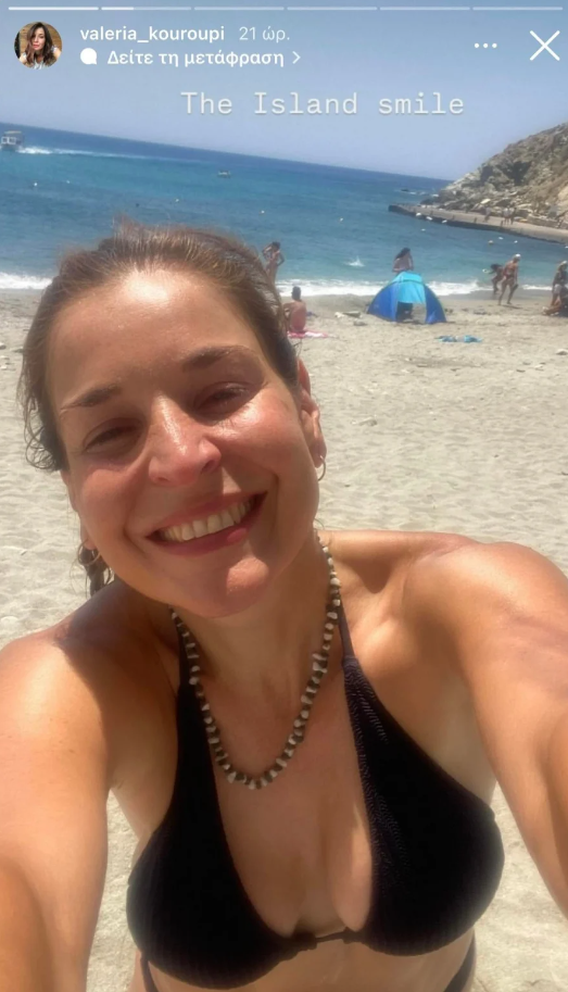 Μάλιστα, σε ορισμένες φωτογραφίες, η ηθοποιός ποζάρει χωρίς ίχνος ρετούς ή μακιγιάζ, φορώντας το μαγιό της, ενώ σε άλλες καλημερίζει τους διαδικτυακούς της φίλους από γραφικές γωνιές του νησιού.