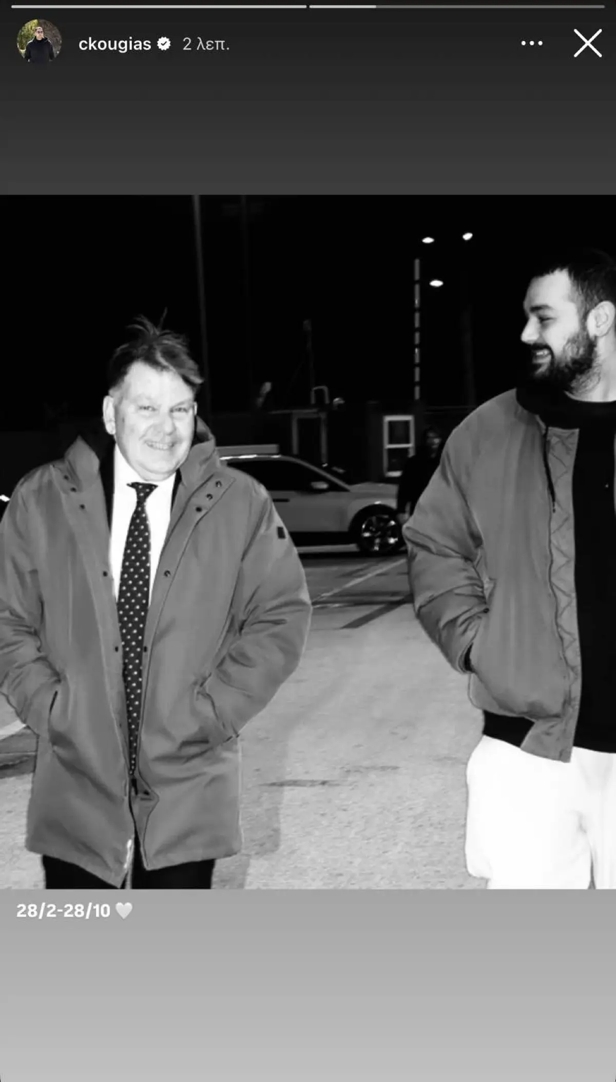 Σήμερα, λοιπόν, για να τον τιμήσει, δημοσίευσε μία παλιά τους φωτογραφία σε story στον προσωπικό του λογαριασμό στο Instagram, στην οποία ο ίδιος κοιτούσε τον δικηγόρο χαμογελαστός και γεμάτος θαυμασμό και έγραψε απλώς επάνω: «28/2 – 28/10», με μία λευκή καρδιά δίπλα.