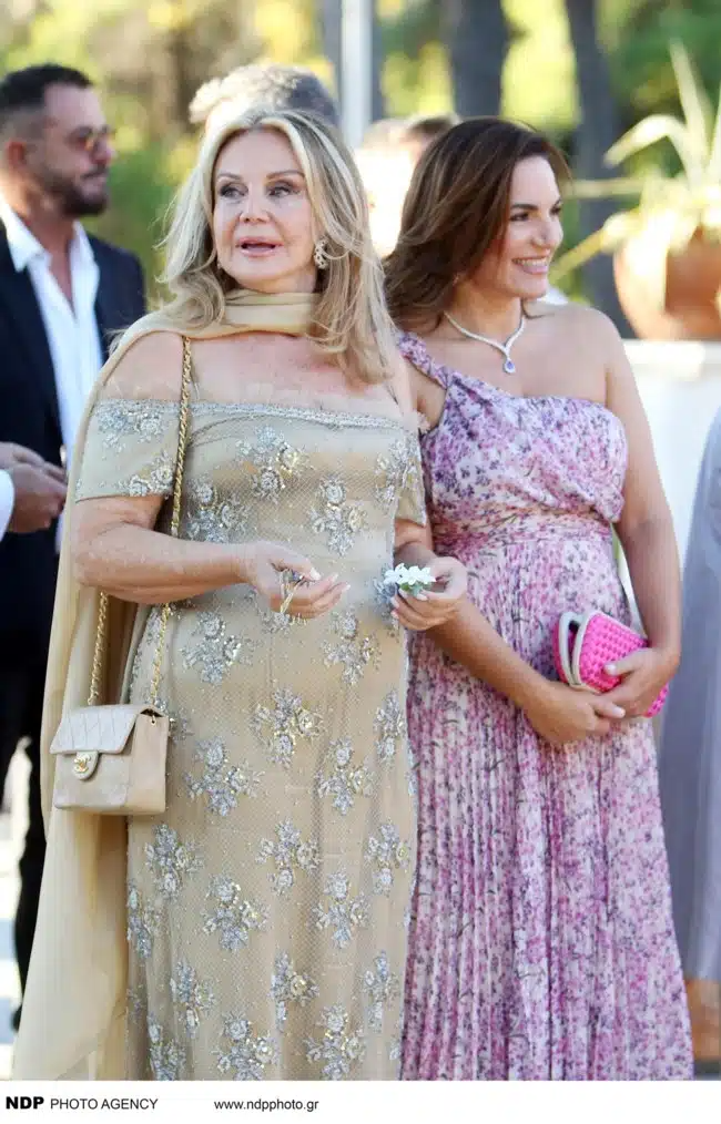 Η στιγμή της άφιξης της Χρυσής Βαρδινογιάννη στον περίβολο της εκκλησίας αποτυπώθηκε από τις κάμερες σε κάθε της βήμα.