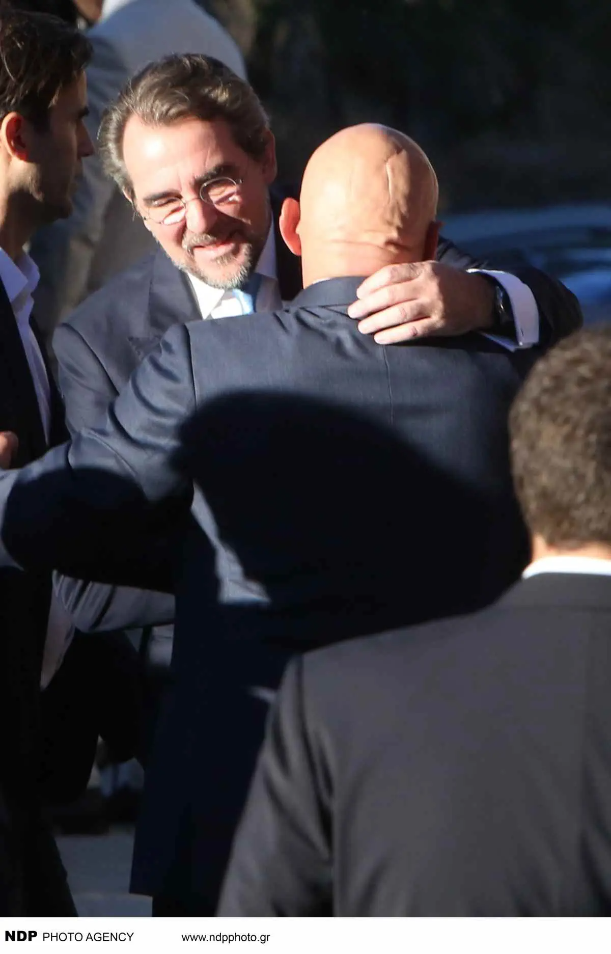 η Χρυσή Βαρδινογιάννη μαζί με τον σύζυγό της, Νικόλαος Ντε Γκρες παρέμειναν κοντά στον γαμπρό καθόλη τη διάρκεια της αναμονής μέχρι να καταφτάσει η νύφη στο ναό, με τον δεύτερο να τον αγκαλιάζει σφιχτά.