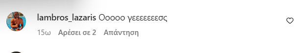 Η ανάρτηση της ηθοποιού συγκέντρωσε περισσότερα από 24 χιλιάδες likes και αρκετά κολακευτικά σχόλια. Από τους πρώτους που έσπευσαν να σχολιάσουν το post ήταν ο αγαπημένος της, Λάμπρος Λάζαρης ο οποίος έδειξε τον ενθουσιασμό του γράφοντας: «Ooooo γεεεεεεεσς».