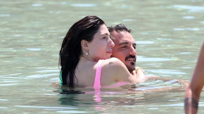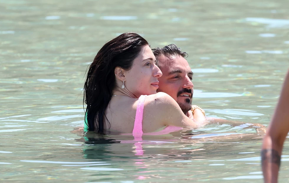 Αγκαλιά μέσα στο νερό έκαναν τις βουτιές τους αδιαφορώντας για τα αδιάκριτα βλέμματα ενώ στη συνέχεια χαλάρωσαν στις ξαπλώστρες τους πίνοντας δροσερά ποτά. Το ζευγάρι είναι χρόνια μαζί και έχει δύο παιδιά.