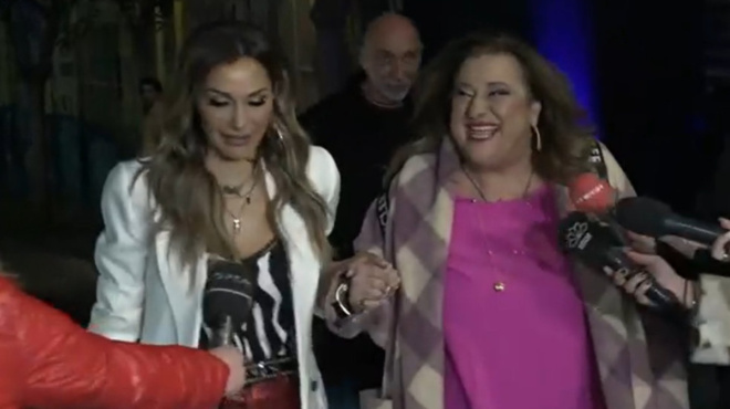 Η Δέσποινα Βανδή ρωτήθηκε για τα αρνητικά σχόλια μετά το ζεϊμπέκικο και τις τρυφερές στιγμές τους on stage, αλλά η τραγουδίστρια χαμογέλασε και… μπήκε στο νυχτερινό κέντρο «Hotel Ερμού» αγκαζέ με την Ελισάβετ Κωνσταντινίδου.