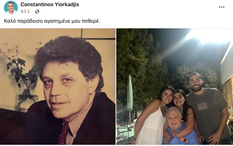 «Καλό παράδεισο αγαπημένε μου πεθερέ», έγραψε στη λεζάντα της ανάρτησής του ο κος. Κωνσταντίνος Γιωρκάτζης.