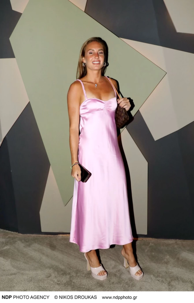 Η πρώην παίκτρια του Survivor για την πρώτη δημόσια εμφάνισή της μετά το παιχνίδι επέλεξε να φορέσει ένα lingerie φόρεμα σε λιλά απόχρωση που αναδείκνυε το έντονο μαύρισμά της, το οποίο συνδύασε με παρόμοιας απόχρωσης πέδιλα και louis vuitton τσάντα.