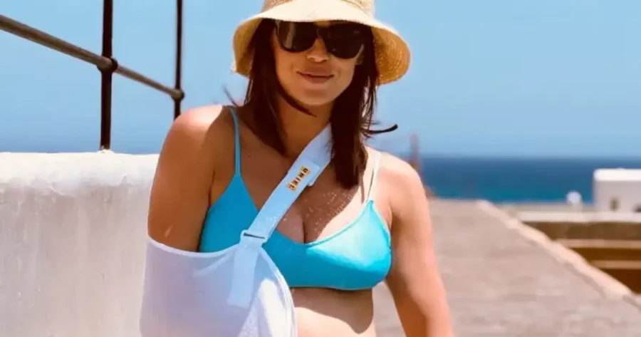 Την αποκάλυψη έκανε η ίδια μέσα από μια ανάρτηση στο Instagram το απόγευμα της Τετάρτης 11 Ιουνίου, την οποία συνόδευσε με φωτογραφίες από τις διακοπές της στη Μύκονο, στις οποίες όπως θα δεις, είχε δεμένο το χέρι της.
