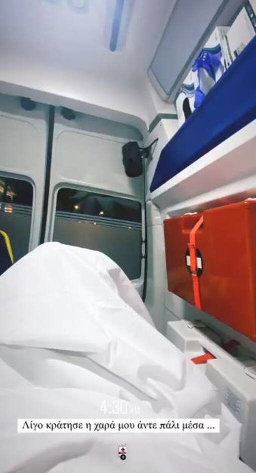 «Λίγο κράτησε η χαρά μου και άντε πάλι μέσα», έγραψε η Άρτεμις Αστεριάδη στη φωτογραφία μέσα από το ασθενοφόρο. Στη συνέχεια, η ίδια πόσταρε μια φωτογραφία μέσα από το νοσοκομείο, χωρίς να κάνει γνωστές περισσότερες λεπτομέρειες.