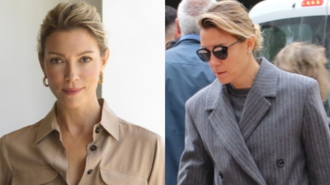 Από πάνω είχε φορέσει ένα μαύρο blazer ενώ συνδύασε το look με ασημί ψηλοτάκουνα πέδιλα και μαύρο δερμάτινο φάκελο.