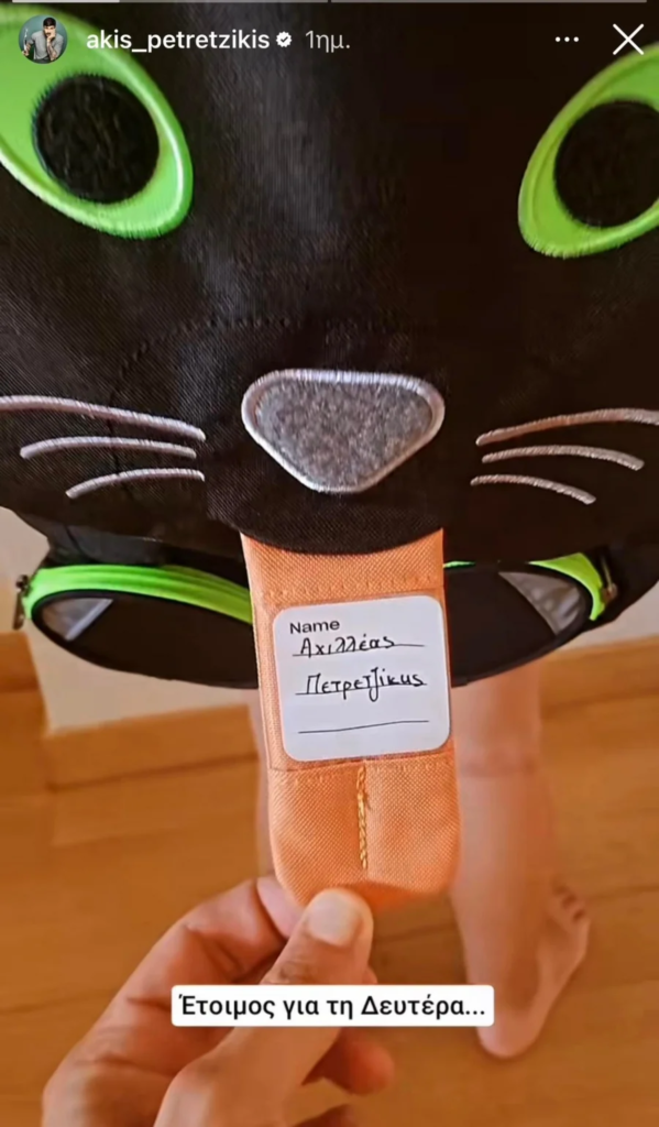 Πριν λίγες ώρες ο Άκης Πετρετζίκης πόσταρε ένα Instagram-story και μας εξήγησε ότι ο γιος του Αχιλλέας επιστρέφει στο νήπιο. Ο τρυφερός μπαμπάς φρόντισε να του αγοράσει την πιο cool σχολική τσάντα και πρόσθεσε ετικέτα με το όνομα του μικρού.