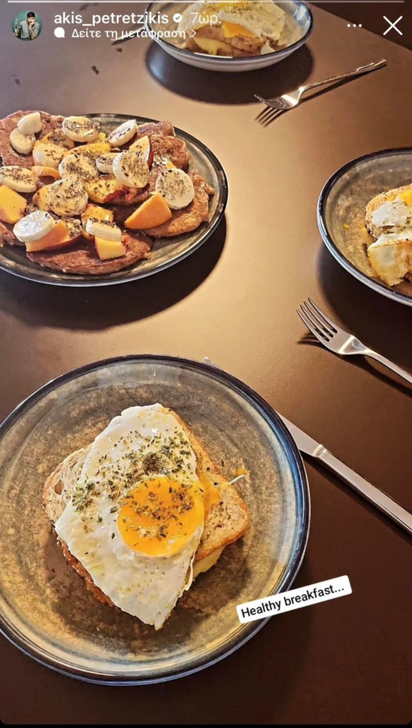 Λίγο αργότερα ο σεφ δημοσίευσε μια φωτογραφία με το υγιεινό πρωινό του το οποίο αποτελούνταν από τοστ με αυγό και pancakes με φρέσκα φρούτα.