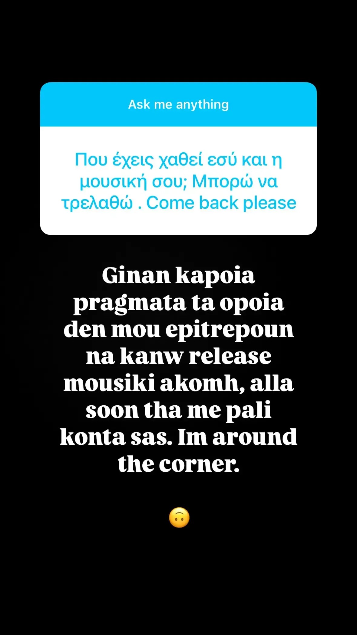 «Έγιναν κάποια πράγματα τα οποία δε μου επιτρέπουν να κάνω release μουσική ακόμη, αλλά σύντομα θα είμαι πάλι κοντά σας» έγραψε σε μια από τις απαντήσεις του.