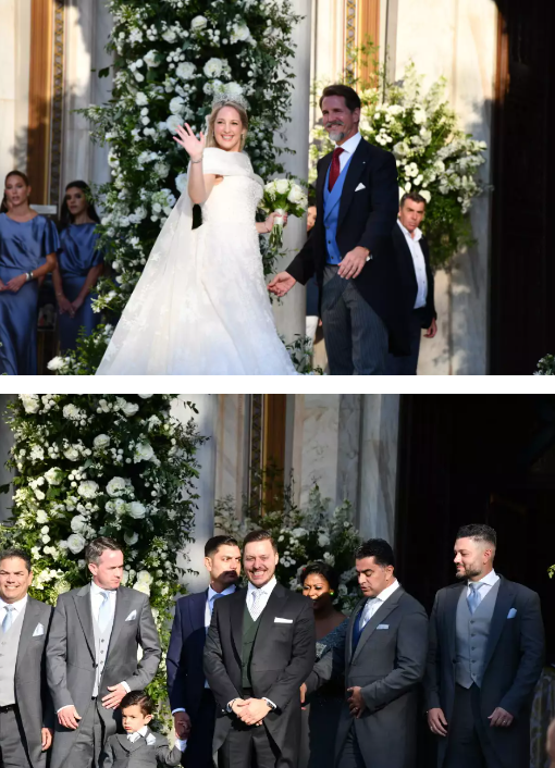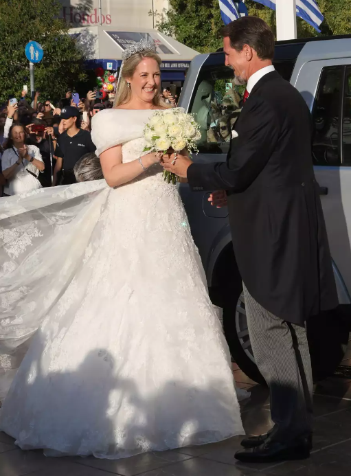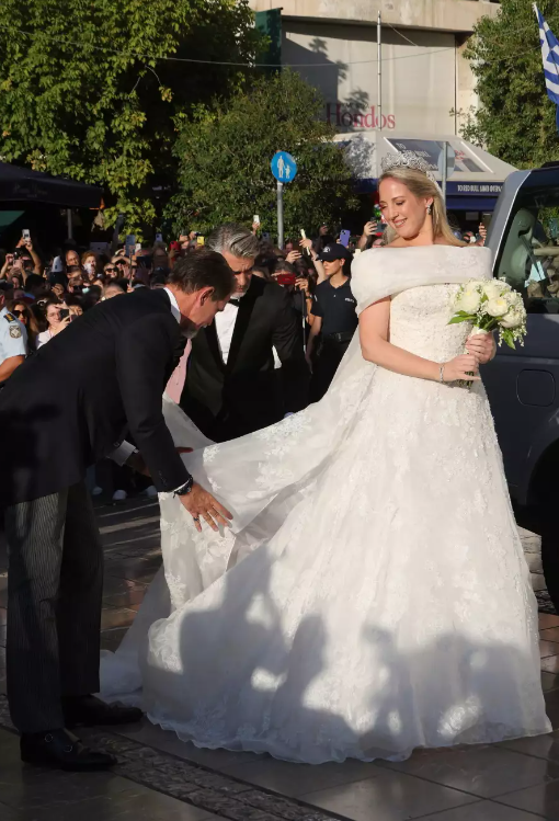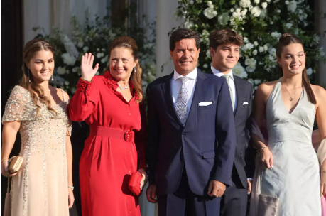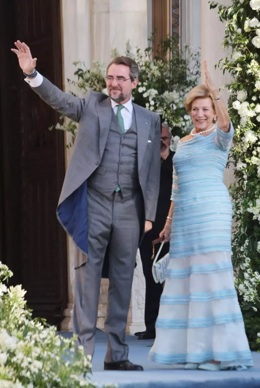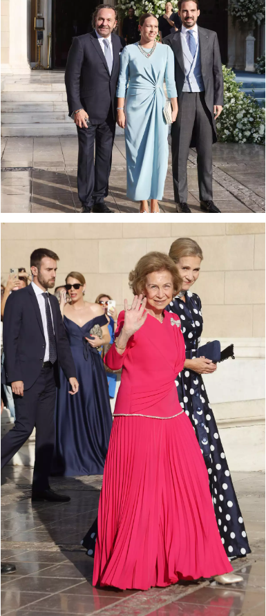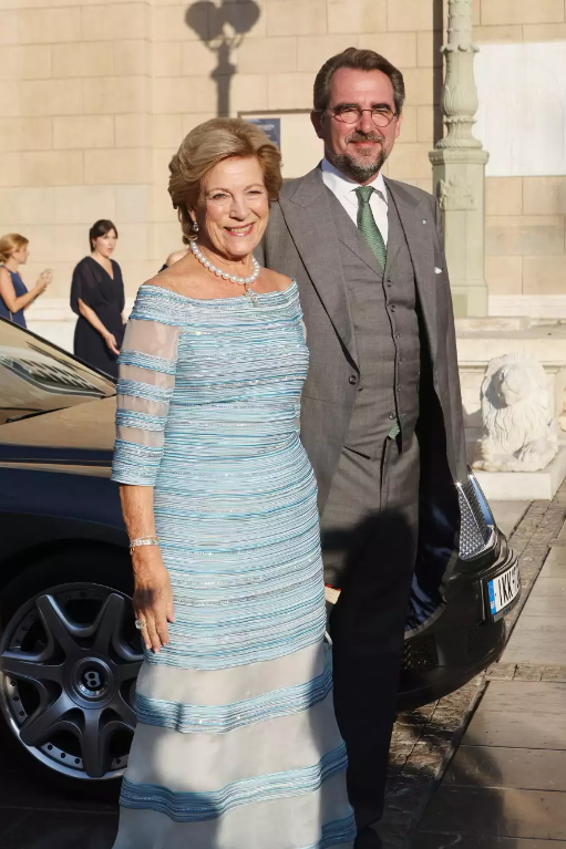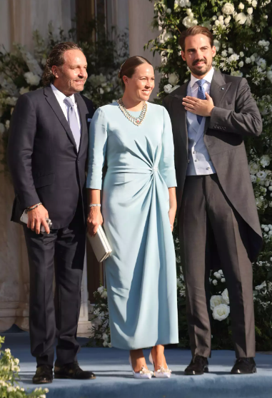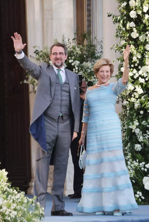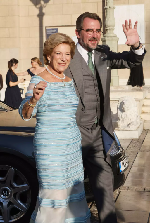Η μητέρα της νύφης, Άννα-Μαρία, έφτασε στη Μητρόπολη συνοδευόμενη από τον γιο της Νικόλαο, λίγα λεπτά πριν από την έναρξη της τελετής. Η παρουσία της προκάλεσε το ενδιαφέρον των φωτογράφων και των παρευρισκόμενων, καθώς η ίδια έδειχνε ιδιαίτερα χαρούμενη και συγκινημένη για την κόρη της. Η Άννα-Μαρία είναι γνωστή για τις κομψές της εμφανίσεις και για το διακριτικό στυλ που διατηρεί εδώ και χρόνια.