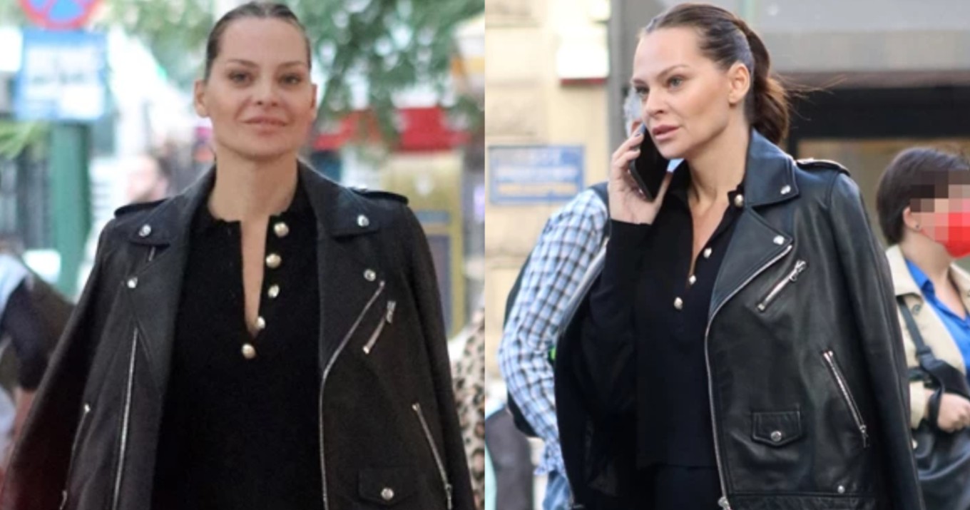 Ειδικότερα, η σύζυγος του Αντώνη Ρέμου επέλεξε να φορέσει ένα μαύρο κολάν, μποτάκια και ένα στιλάτο δερμάτινο biker jacket, ενώ είχε πιασμένα τα μαλλιά της ψηλά, σε μία κομψή αλογοουρά, η οποία τόνιζε τα μεγάλα μάτια της και τις γωνίες του προσώπου της.