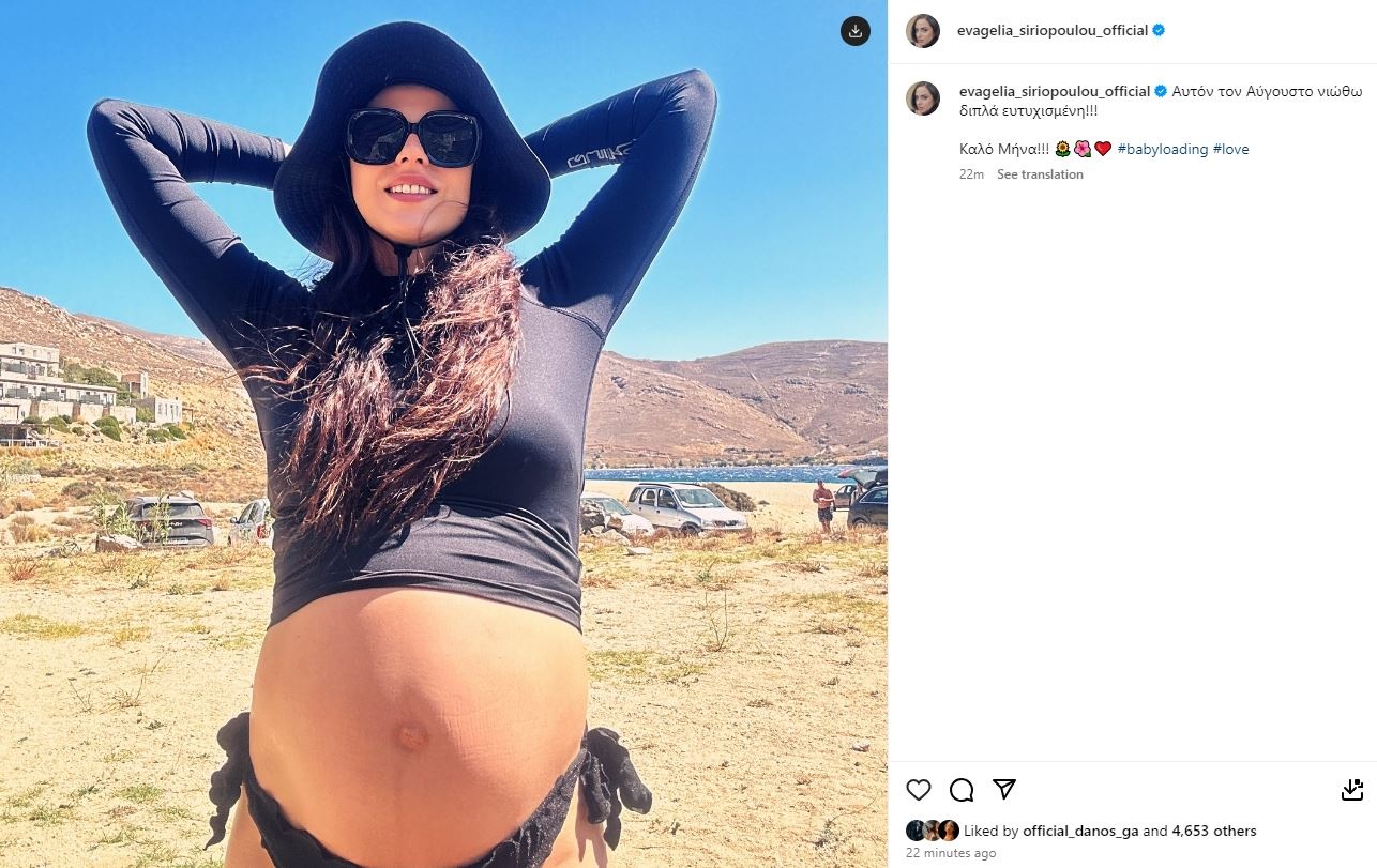 Την ευχάριστη είδηση αποκάλυψε η ίδια μέσω του προσωπικού της λογαριασμού στο Instagram. Με φωτογραφίες που αναδεικνύουν τη φουσκωμένη κοιλίτσα της, η Ευαγγελία μοιράστηκε τη χαρά της με τους φίλους και τους θαυμαστές της, γράφοντας στην ανάρτησή της: «Αυτόν τον Αύγουστο νιώθω διπλά ευτυχισμένη!!! Καλό Μήνα!!!»