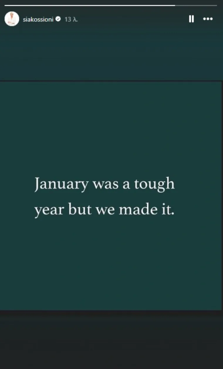 Σήμερα, 1 Φεβρουαρίου, η Σία Κοσιώνη δημοσίευσε ένα story στον προσωπικό της λογαριασμό στο Instagram, γράφοντας χαρακτηριστικά: