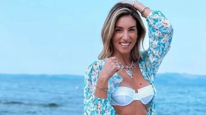 Τις καλοκαιρινές της διακοπές στην Σαντορίνη απολαμβάνει η Αθηνά Οικονομάκου.