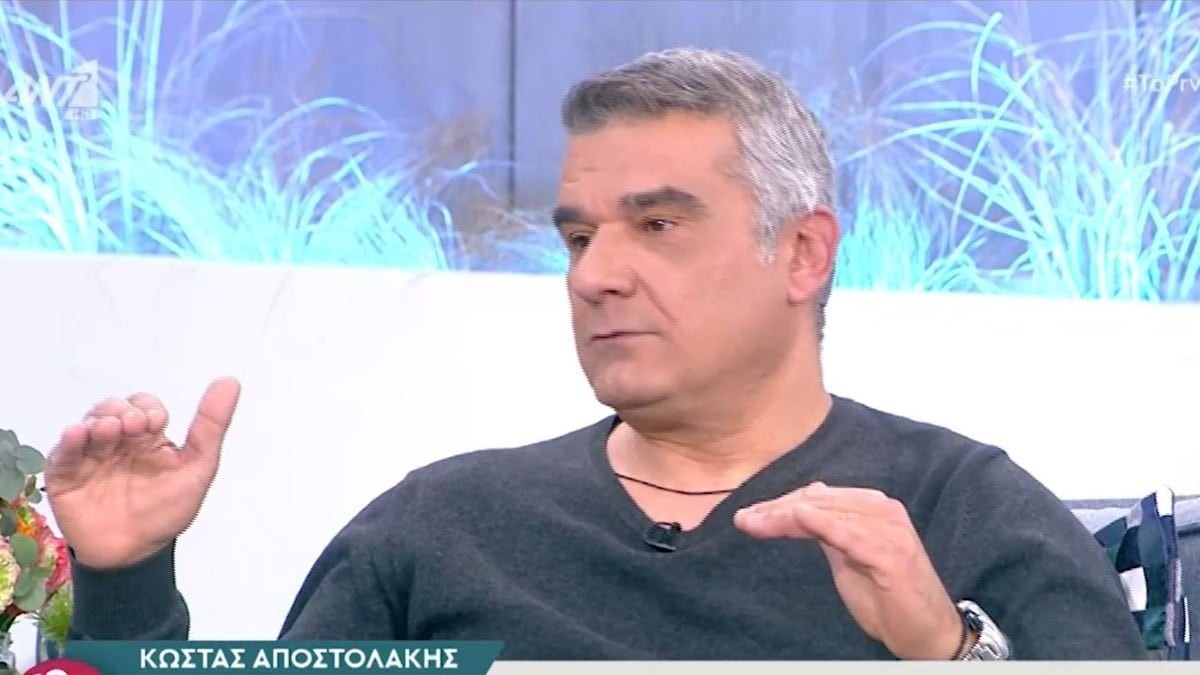 Ο Κώστας Αποστολάκης βρέθηκε στην εκπομπή «Καλύτερα αργά» της Αθηναϊδας Νέγκα, προχθές, Τρίτη, το βράδυ και μίλησε για τον ρόλο του πατέρα, την σχέση που έχει με την κόρη του και τη σχέση που έχει με την εκκλησία.