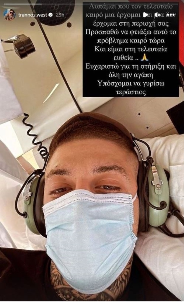 Ο Trannos πόσταρε δύο φωτογραφίες μέσα από το δωμάτιο που νοσηλεύεται και μάλιστα δεν δίστασε να ζητήσει συγνώμη από τους fans του, που απέχει από τις εμφανίσεις προκειμένου να δώσει βάση στην υγεία του.