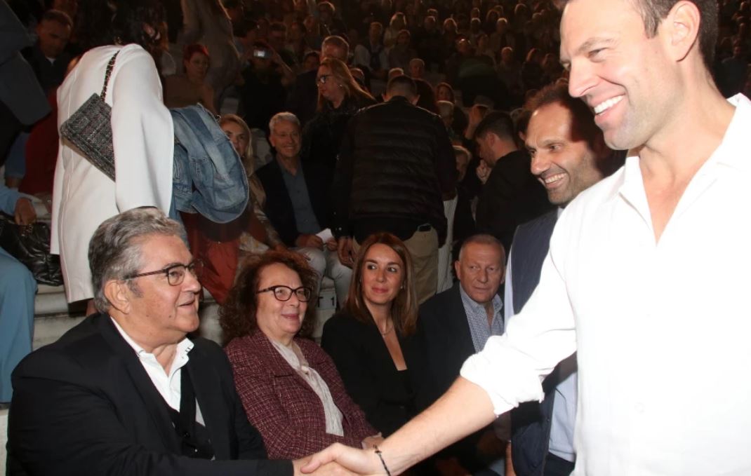 Στη συναυλία του Σταύρου Ξαρχάκου το ζευγάρι χαιρέτησε το νέο πρόεδρο του ΣΥΡΙΖΑ, Στέφανο Κασσελάκη.