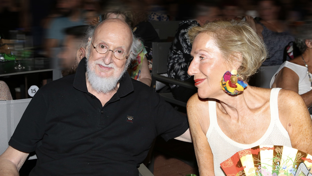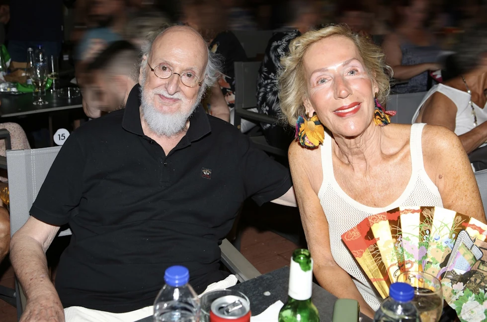 Ο Διονύσης Σαββόπουλος, σε μια σπάνια βραδινή εμφάνισή του, φωτογραφήθηκε μαζί με την σύζυγό του, Άσπα. Ο αξιόλογος τραγουδοποιός παρευρέθηκε στο Θέατρο Άλσος για να παρακολουθήσει την επιθεώρηση «Τότε, τώρα, πάντα» του Σταμάτη Φασουλή.