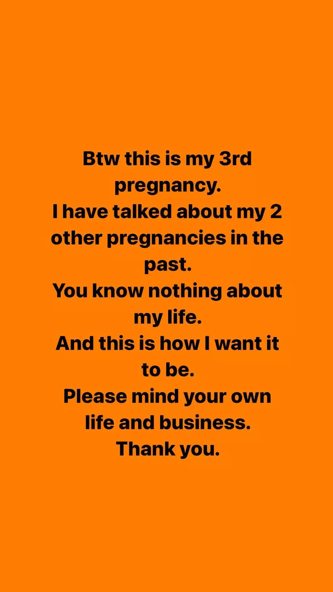 Η ίδια, το απόγευμα του Σαββάτου 30/7 έκανε μια νέα ανάρτηση στο Instagram, μέσα από την οποία αποκάλυψε πως στο παρελθόν είχε άλλες δύο εγκυμοσύνες, τονίζοντας πως δεν γνωρίζουμε πολλά πράγματα για τη ζωή της.
