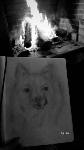 Μπροστά σε ένα αναμμένο τζάκι, η ίδια μας έδειξε το μπλοκ ζωγραφικής της και εντυπωσιάζει όλους τους followers της με το σκίτσο ενός λύκου που έφτιαξε καθώς χαλάρωνε από το φορτωμένο πρόγραμμά της.