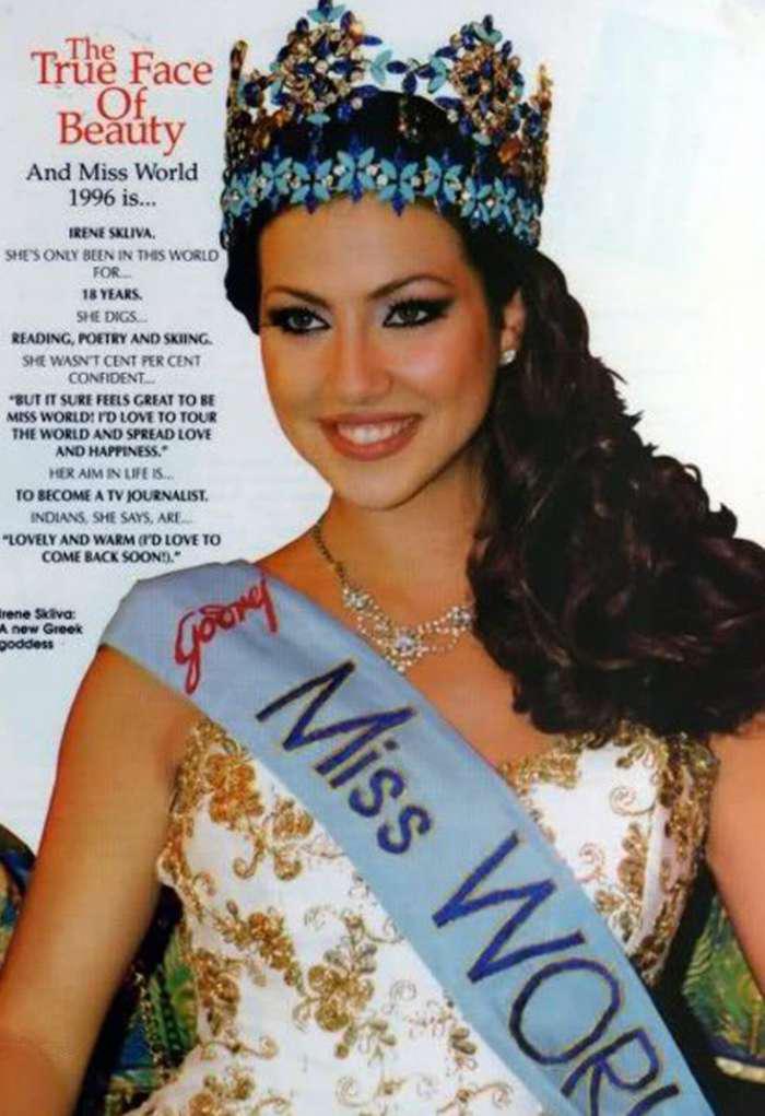 Ειρήνη Σκλήβα : Ο 46ος διαγωνισμός για την ανάδειξη της Μις Κόσμος «1996» έκανε ολόκληρο τον κόσμο να μιλά για την Ελλάδα. Κι αυτό διότι ανέδειξε νικήτρια την Ελληνίδα διαγωνιζόμενη που δεν ήταν άλλη από την Ειρήνη Σκλήβα. Τότε η Ειρήνη ήταν μόλις 18 ετών.