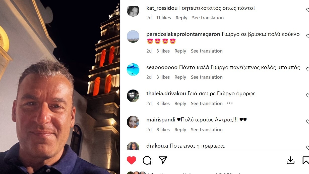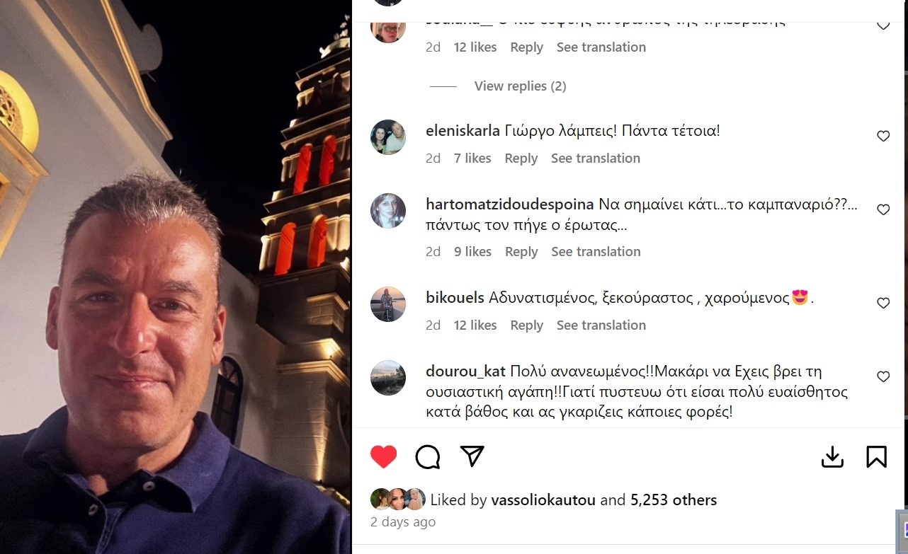 Κάποια από τα σχόλια που έλαβε στο Instagram του ήταν: «Πολύ ανανεωμένος!!Μακάρι να έχεις βρει τη ουσιαστική αγάπη!!Γιατί πιστεύω ότι είσαι πολύ ευαίσθητος κατά βάθος», «Γιώργο, σε βρίσκω πολύ κούκλο», «Στα καλύτερά σου»!