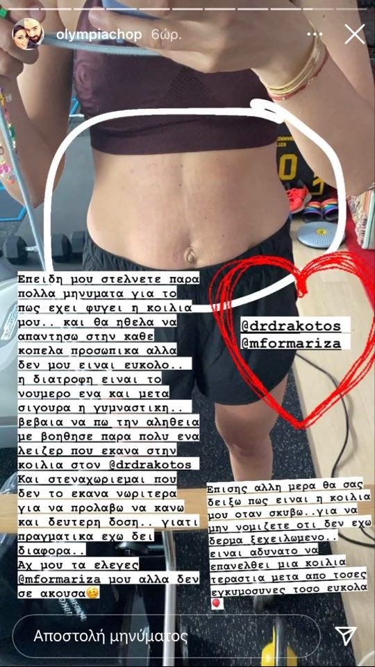 Παράλληλα, όπως η ίδια έχει αποκαλύψει, στο παρελθόν είχε κάνει λέιζερ στην κοιλιά, το οποίο την βοήθησε στην δερματική χαλάρωση.