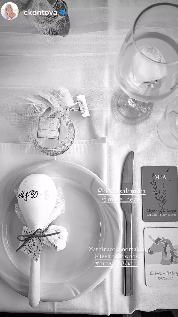 Νονοί της νεοφώτιστης Σιέννας-Ηλέκτρας έγιναν οι πολύ καλοί φίλοι του ζευγαριού Κωνσταντίνα Βασιλείου, Πέτρος Ανδριόπουλος, Μιχάλης Νέζης και Δώρα Τσακανίκα.