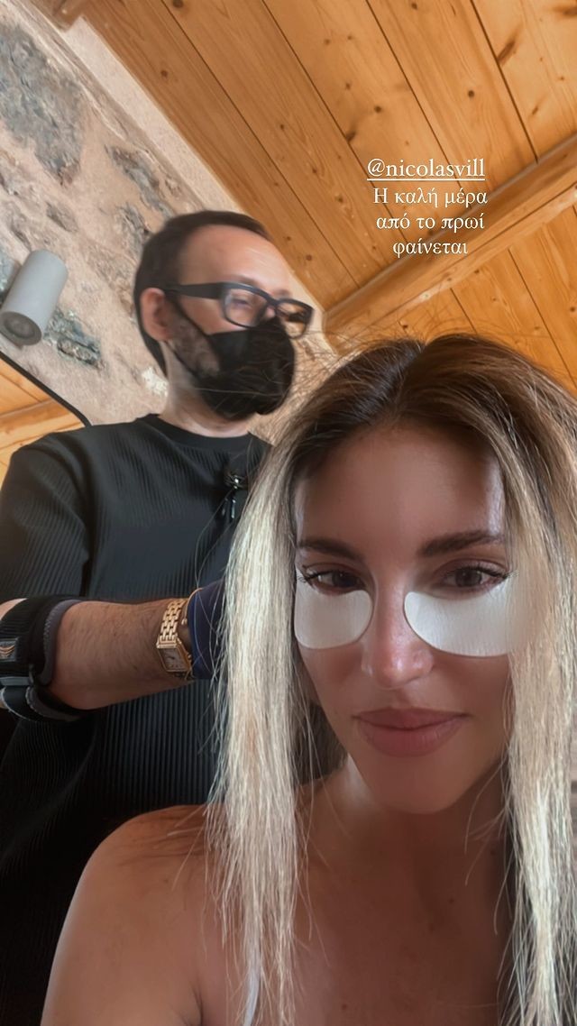 Οι προετοιμασίες ξεκίνησαν από νωρίς το πρωί, μιας και η γλυκιά μαμά δημοσίευσε ένα story στον προσωπικό της λογαριασμό στο Instagram, όπου φαινόταν να της φτιάχνουν τα μαλλιά, ενώ κάτω από τα μάτια της είχε βάλει eye patches.