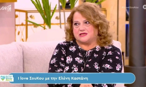 Το μεσημέρι της Κυριακής (18/2), η Ελένη Καστάνη φιλοξενήθηκε στην εκπομπή «I Love ΣουΚού», προσφέροντας μια συνέντευξη γεμάτη έντονα συναισθήματα στη Μπεττυ Μαγγίρα και τον Δημήτρη Μακαλιά.