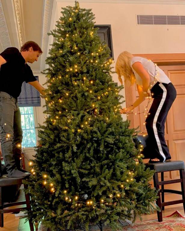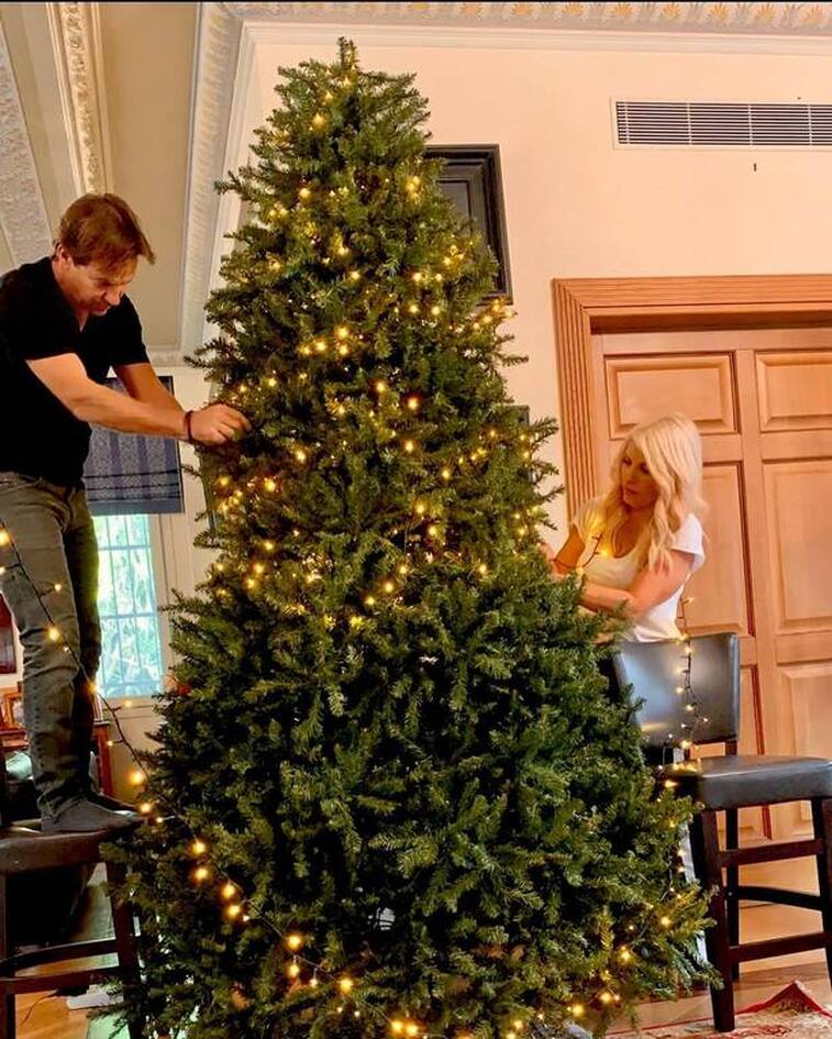 Εκτός όμως από το χριστουγεννιάτικο δέντρο, μαζί με τις τρεις κόρες της και τον Μάκη Παντζόπουλο στολίζει και τον κήπο της με λαμπάκια, ακόμα και την εξώπορτά της.