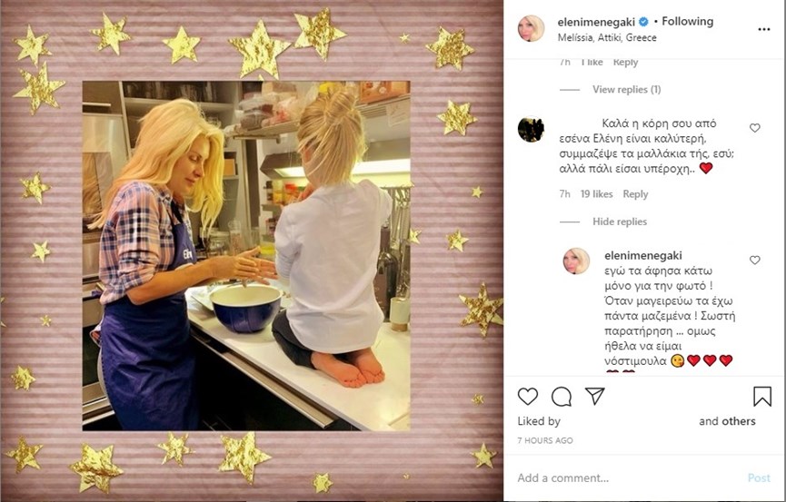 «Καλά η κόρη σου από εσένα Ελένη είναι καλύτερή, συμμάζεψε τα μαλλάκια τής, εσύ; αλλά πάλι είσαι υπέροχη.. ❤», έγραψε μία διαδικτυακή της φίλη.