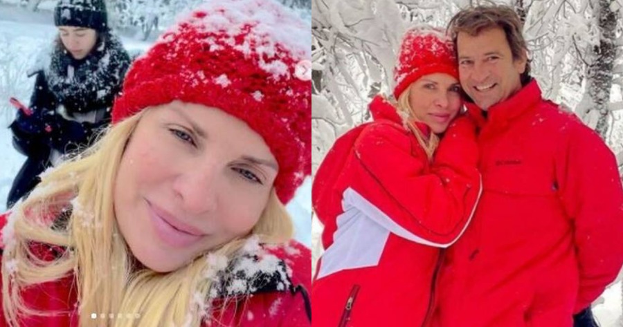 Η Ελένη Μενεγάκη απολαμβάνει το χιόνι σαν παιδί
