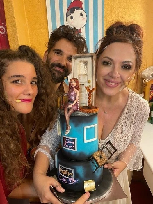 Στην πρώτη φωτογραφία ανάρτησε την τούρτα, η οποία ήταν εμπνευσμένη από την παράσταση, με την οποία η ίδια αισθάνεται μεγάλη σύνδεση, δεδομένου ότι έχει γράψει το κείμενο και τη συνόδευσε με τη λεζάντα «Κάποιος γιορτάζει που να ξέρω που να θυμάμαι τι να πω..Κάποιος γιορτάζει μα το βρήκα. Είμαι εγώ».
