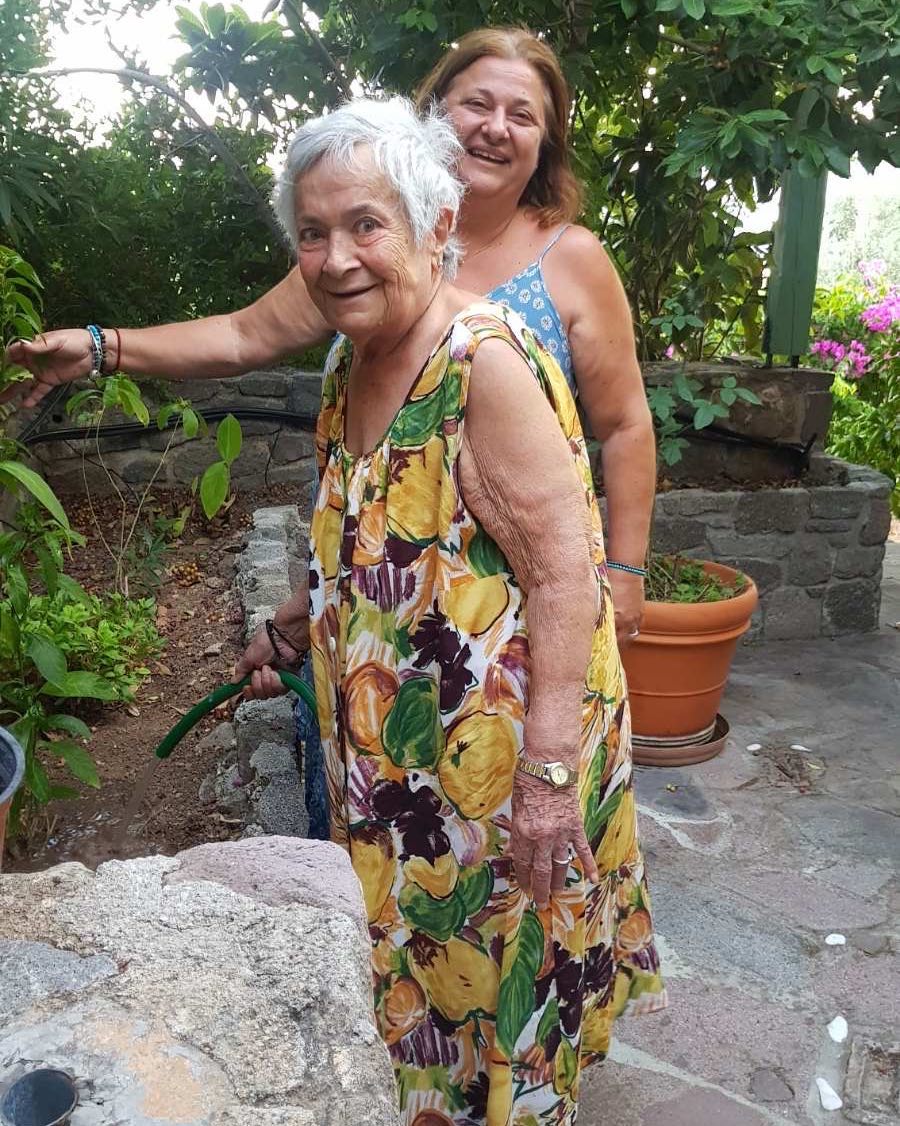 Ελισάβετ Κωνσταντινίδου: Φωτογραφία με τη μητέρα της στον κήπο του εξοχικού στην Αίγινα
