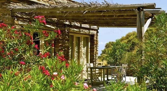 Η Ελένη Μενεγάκη και ο Μάκης Παντζόπουλος έχουν δημιουργήσει μια πολυτελή ξενοδοχειακή μονάδα, η οποία βρίσκεται λίγα μόλις μέτρα από τη θάλασσα. Το φυσικό τοπίο αναδεικνύεται μέσα από την πέτρινη αρχιτεκτονική και τη minimal αισθητική, στοιχεία που κυριαρχούν σε κάθε γωνιά του συγκροτήματος.