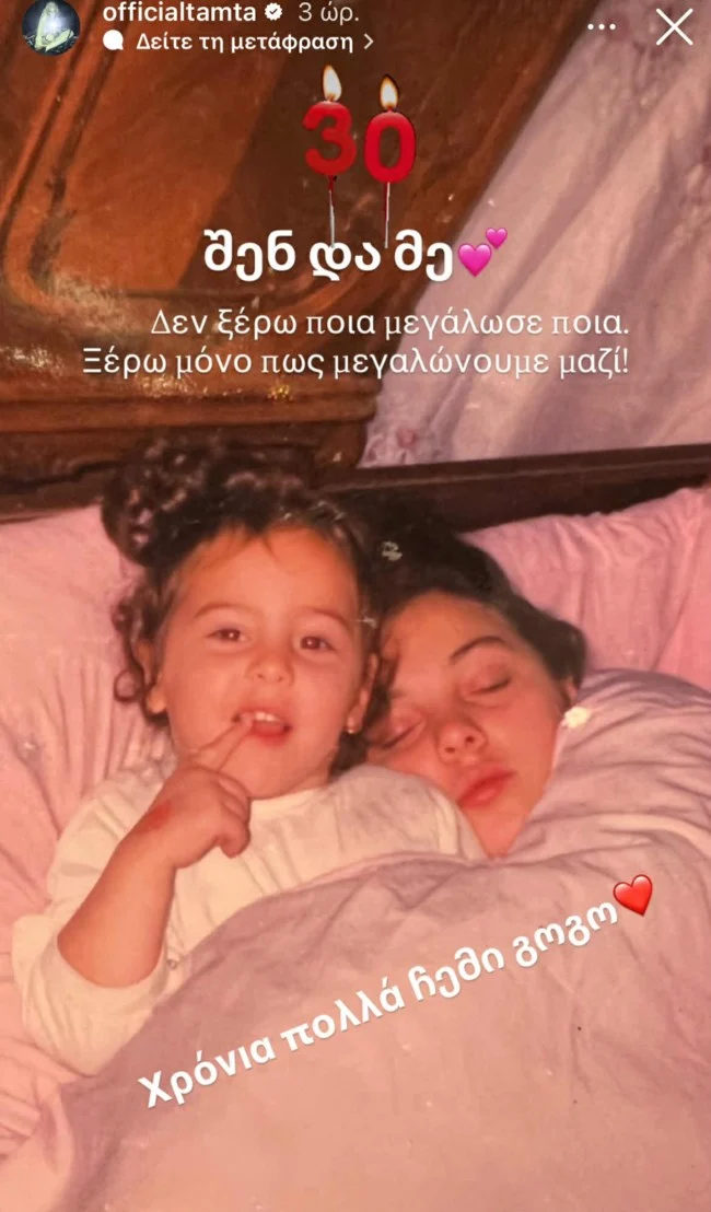 Τον Νοέμβριο του 2025, η Τάμτα δημοσίευσε μια φωτογραφία από την εφηβεία της, όπου ποζάρει μαζί με το μωρό της σε τρυφερό στιγμιότυπο — εκείνη μόλις 14 ετών και μητέρα. Η ανάρτηση συνοδεύτηκε από ευχές και συγκινητικά σχόλια για την κόρη της, που γιόρταζε τα γενέθλιά της.