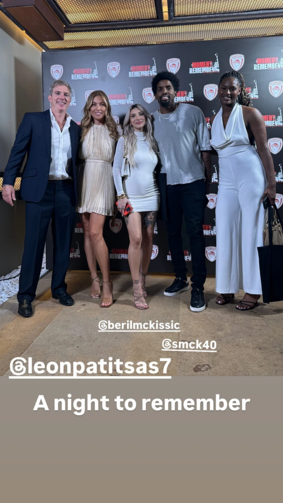 Στο πάρτι στην Αθηναϊκή Ριβιέρα βρέθηκε και ο προπονητής της Εθνικής Ομάδας μπάσκετ και θρυλικός παίκτης του Ολυμπιακού, Βασίλης Σπανούλης μαζί με τη σύζυγό του, Ολυμπία Χοψονίδου.