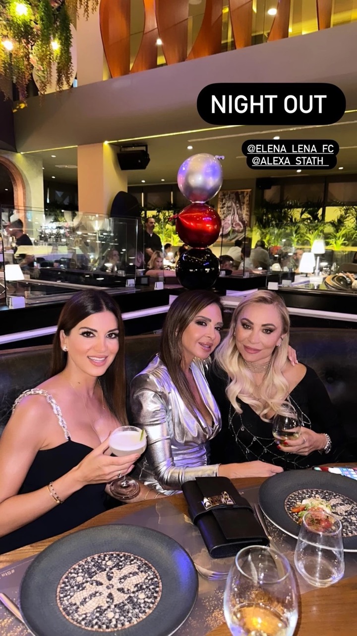Η γνωστή επιχειρηματίας και η παρέα της φαίνεται ότι επέλεξαν εντυπωσιακά looks για τη βραδινή τους έξοδο. Η Αλεξάνδρα φόρεσε ένα ασημί μεταλλιζέ φόρεμα με V ντεκολτέ σε mini μήκος και ολοκλήρωσε το σύνολο με εντυπωσιακά πέδιλα πλατφόρμες του οίκου Gucci.