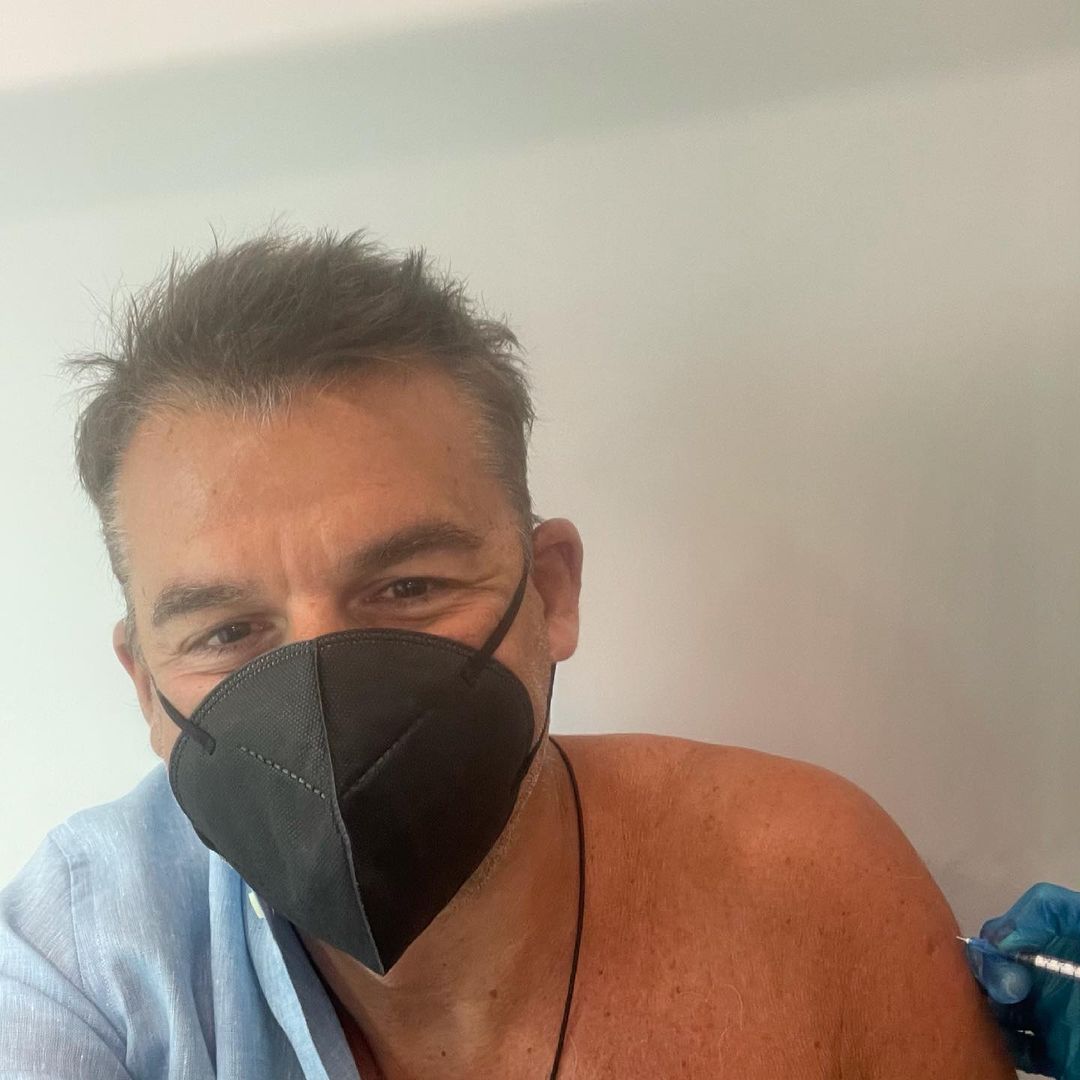 Ο Γιώργος Λιάγκας δημοσίευσε στον προσωπικό του λογαριασμό στο Instagram φωτογραφίες από την στιγμή του εμβολιασμού του στο Εκθεσιακό Κέντρο Ξιφασκίας, χαρούμενος και ανακουφισμένος.