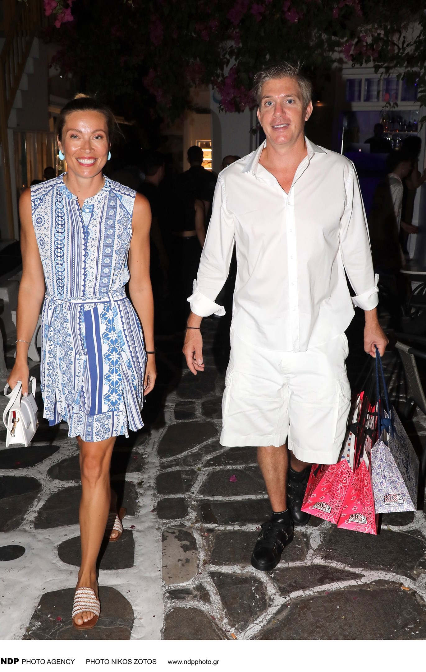 Οι πρώτες εικόνες τους ήρθαν από μια βραδινή βόλτα στα γραφικά Ματογιάννια, όπου το ζευγάρι απολάμβανε τη νυχτερινή ζωή του νησιού.