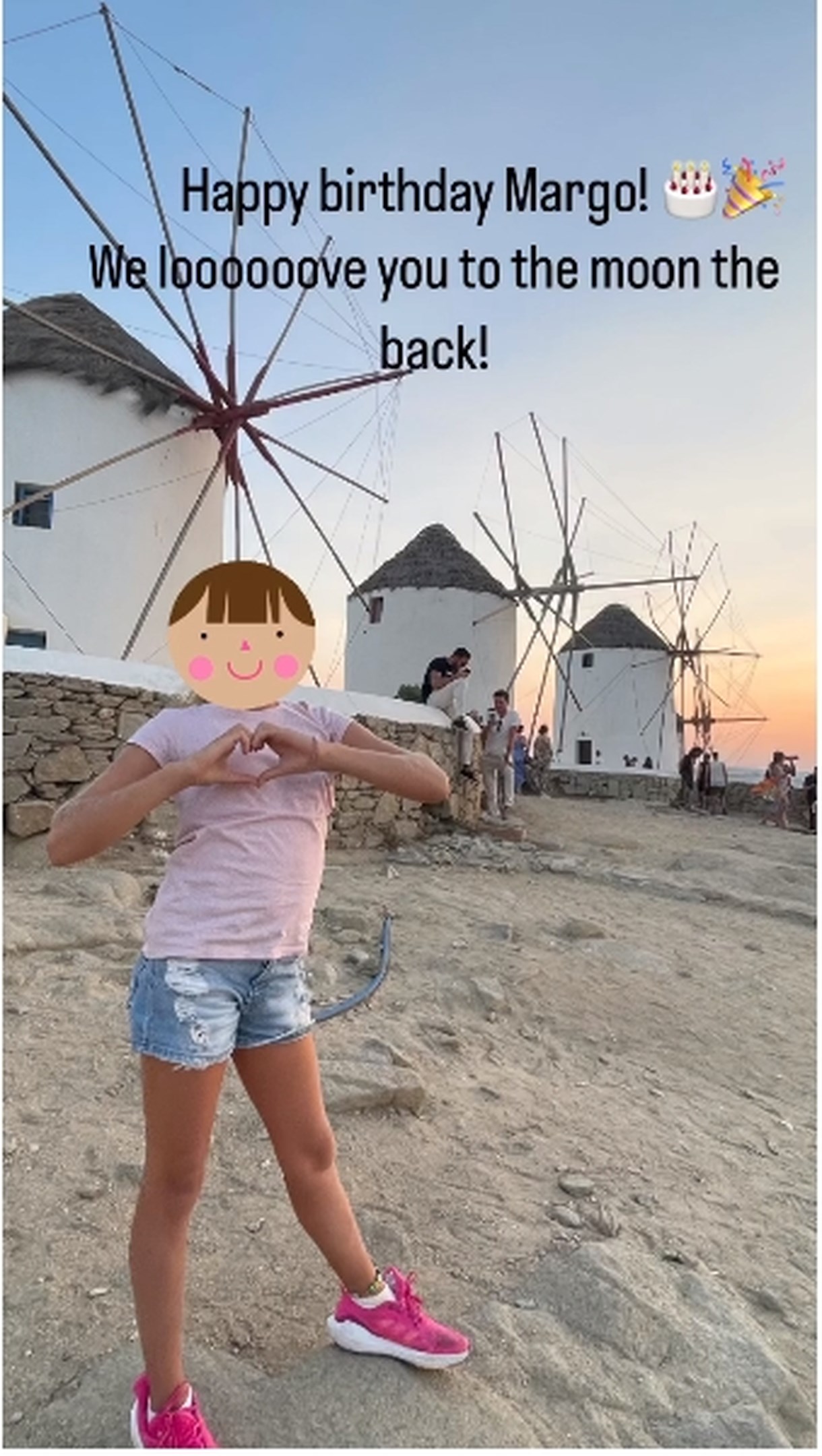 Την επόμενη ημέρα, η οικογένεια, μαζί με την οικογένεια της γνωστής τραγουδίστριας Καλομοίρας, επισκέφτηκε μια κοσμική παραλία του νησιού, όπου αποτύπωσαν την οικογενειακή τους ευτυχία.