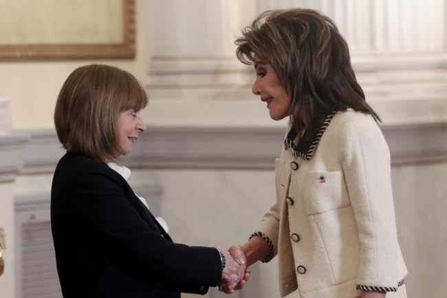 Μεταξύ των επισκεπτών που βρέθηκαν στο Προεδρικό Μέγαρο ήταν η Γιάννα Αγγελοπούλου η οποία έχει αλλάξει την εμφάνισή της έχοντας υιοθετήσει ένα νέο hairlook.