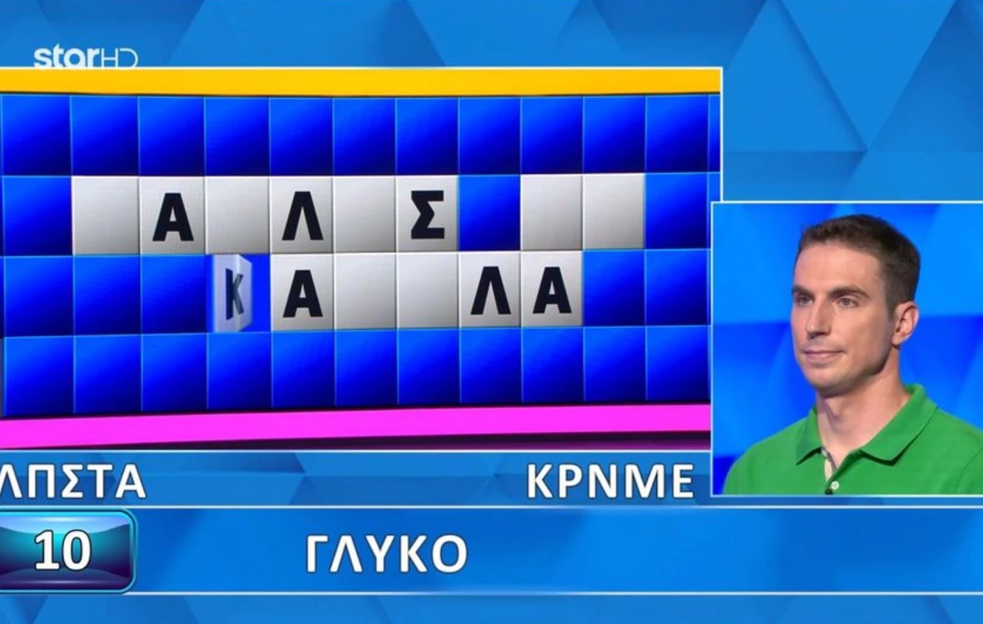 Αρχικά, του δόθηκαν τα καθιερωμένα γράμματα που εμφανίζονται αυτόματα στον τελικό γύρο: «Λ, Π, Σ, Τ, Α». Αυτά δεν ήταν αρκετά για να αποκαλυφθεί η φράση, όμως ακολούθησε η κρίσιμη φάση όπου μπορούσε να διαλέξει πέντε ακόμα γράμματα – τρία σύμφωνα και δύο φωνήεντα.