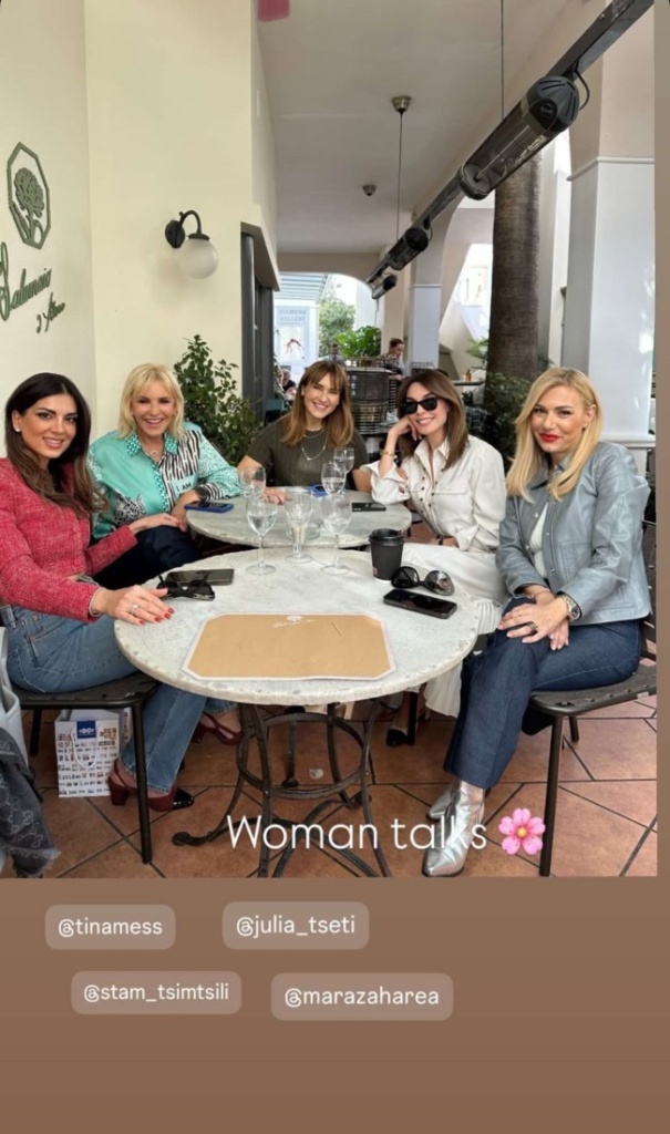 Αυτή τη φορά, στην παρέα τους προστέθηκε η Τατιάνα Στεφανίδου και όλες μαζί πραγματοποίησαν μία εξόρμηση σε ιστορικό ιταλικό στην Κηφισιά. Χαμογελαστές και κομψές πόζαραν όλες μαζί στον φωτογραφικό φακό. “Γυναικείες συζητήσεις”, έγραφε η λεζάντα της ανάρτησής τους.