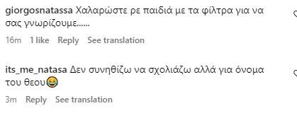 Και αμέσως μετά το ποστ, ξεκίνησαν και τα πικρόχολα σχόλια από ακόλουθους της Αθηνάς που μιλούσαν για επεξεργασία στην φωτογραφία και αχρείαστα φίλτρα.